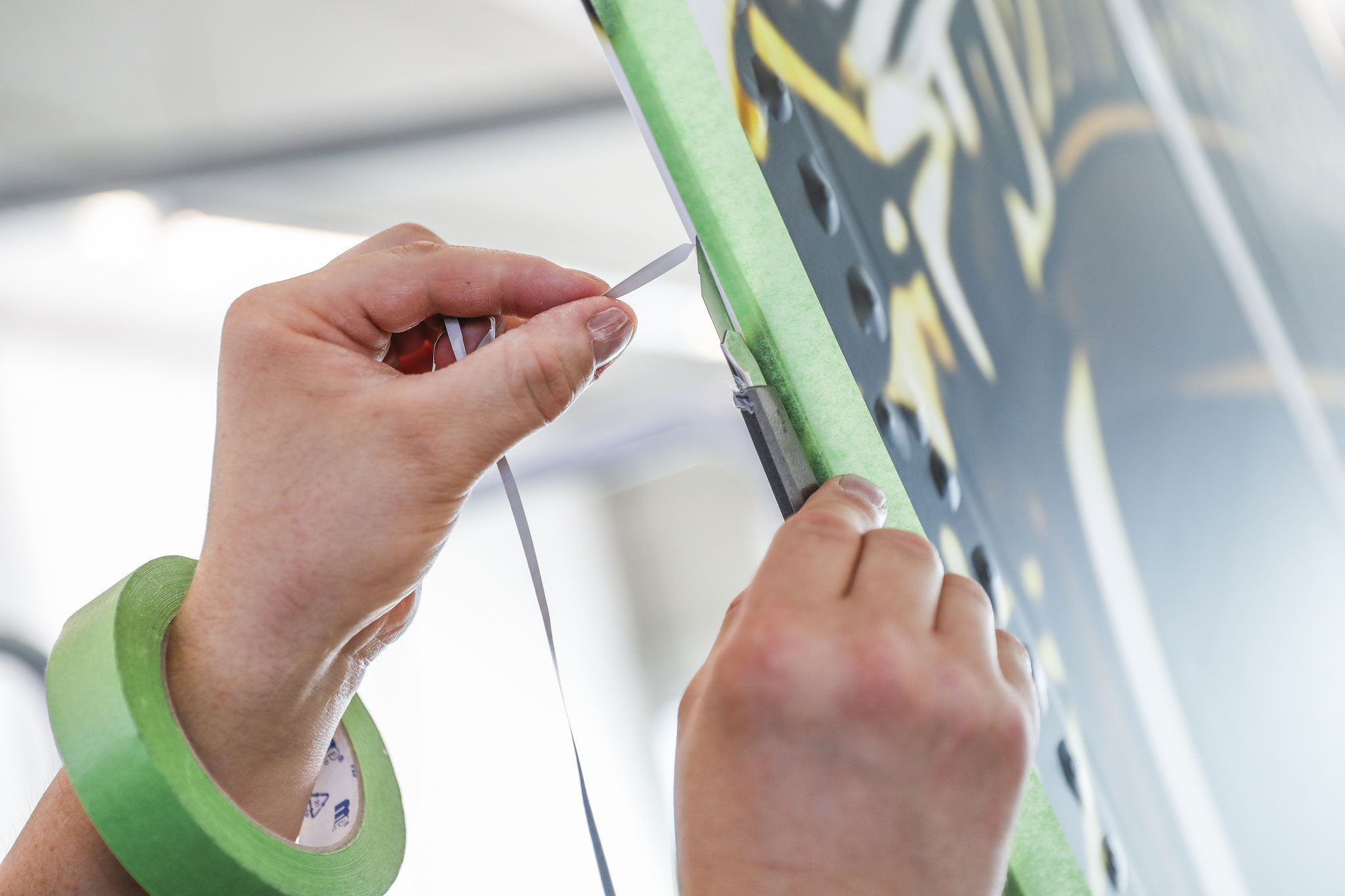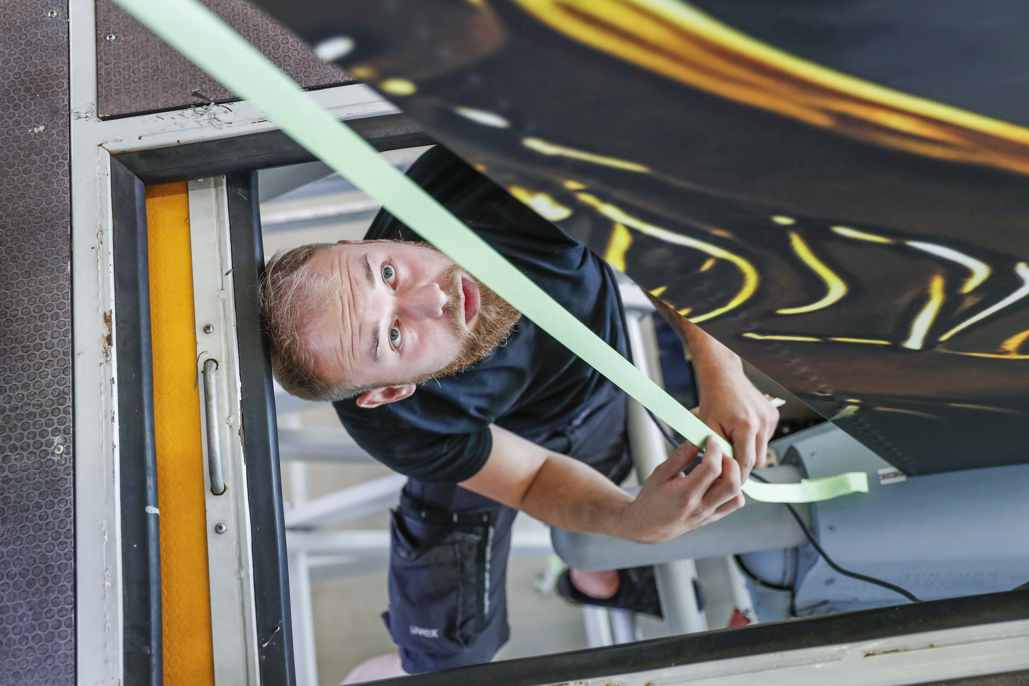 Bis zur Präsentation unserer Flieger ist jedoch immer ein langer Weg zu gehen. Von der Ideenfindung, über Anpassungen am Design aus diversen Gründen, über Antragstellung, Ausschreibung, Auswahl des geeigneten Luftfahrzeuges und Terminplanung mit der durchführenden Firma gehen so einige Wochen und Monate ins Land. Um so schöner ist dann immer der Moment wenn wir den neu folierten Flieger der Öffentlichkeit präsentieren können.